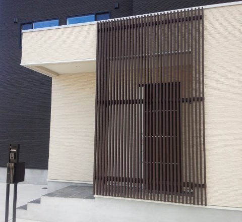 アルミ格子が印象的なすっきりとした素敵なエントランスになりました。家のファザードを彩りな…
