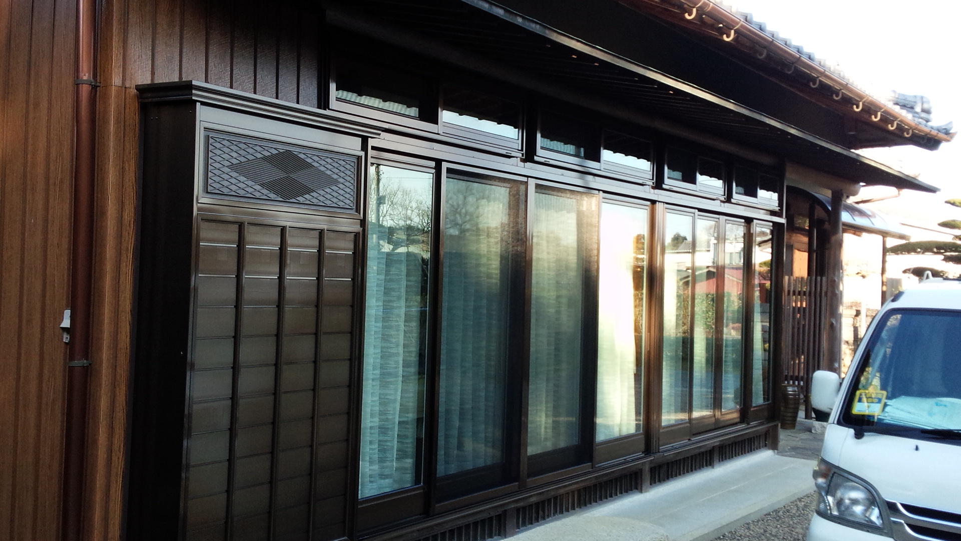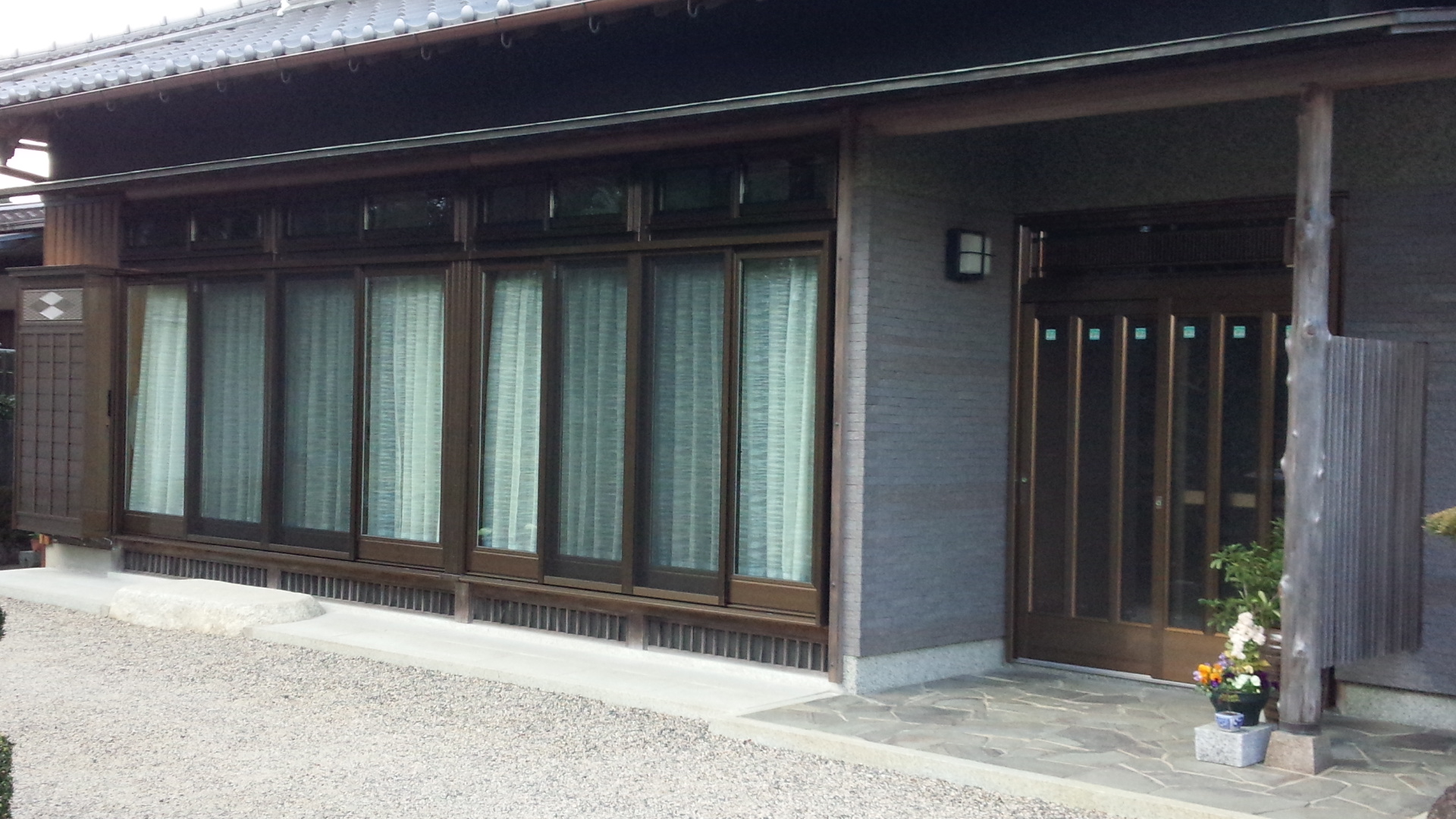 こちらの現場は玄関及びサッシ、戸袋を丸ごとアルミサッシにリフォームさせて頂きました。和風建築の立派なお宅でしたが、年数の経過で木造の窓や玄関の老朽化がみられました。リフォーム後は、本来の日本建築のイメージをくずさず、見違えるほどに新しく素敵に生まれ変わりました。