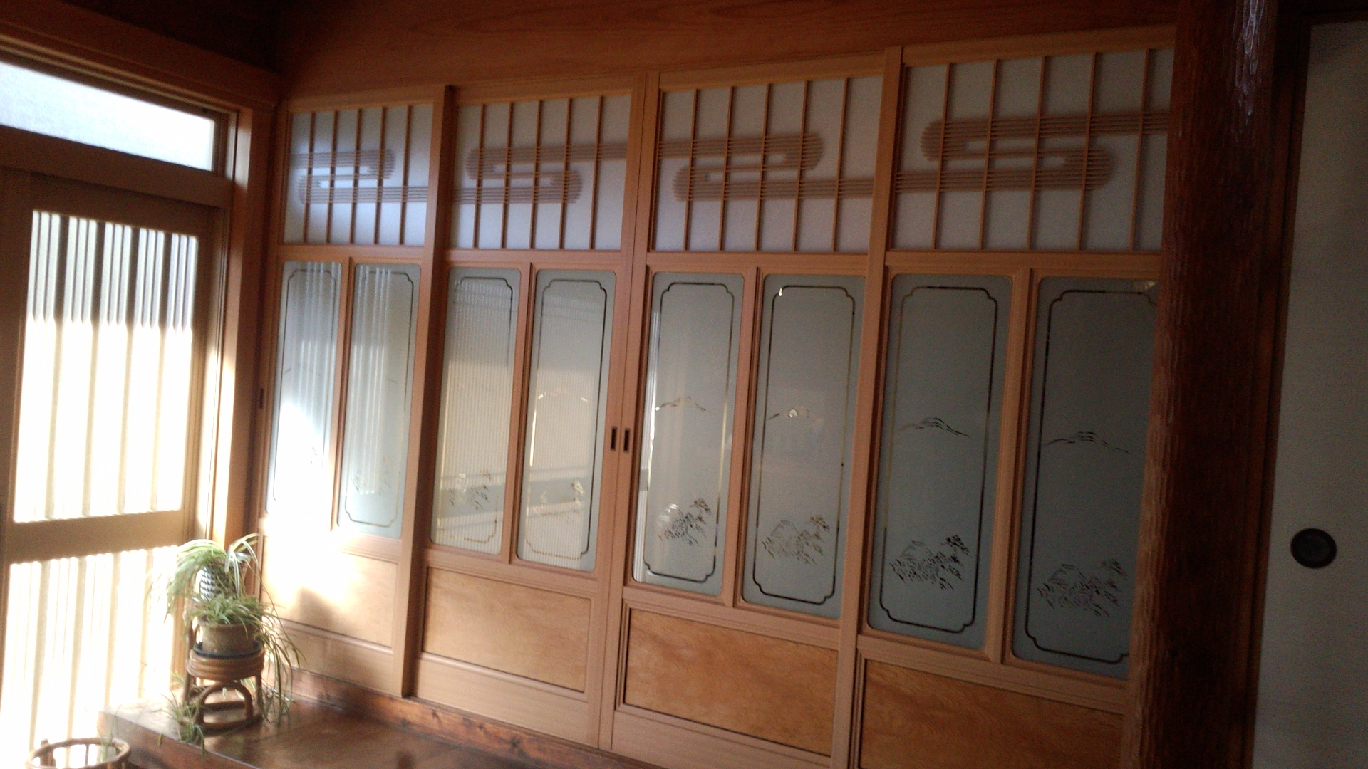 ランマ付の昔ながらの玄関で引戸でしたがすが枠の加工でスッキリとした玄関になりました。作業前 …