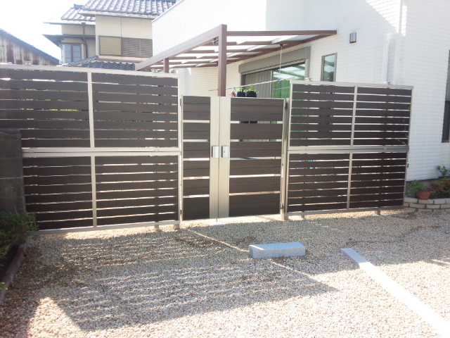 こちらは木調タイプで存在感のある幅広の格子デザインで目隠しや通風機能も備えているので、プライバシーの確保させながらも充実したお庭ライフを楽しめますね。
