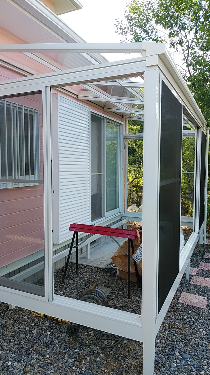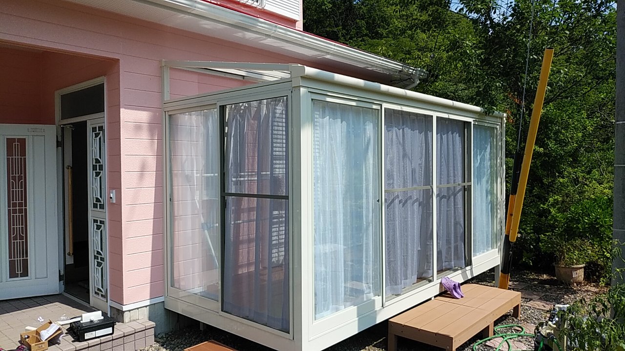 リビングからそのまま出入りのできるONデッキのサンルームを施工させていただきました。第2のリビングとしてご家族さまのくつろぎのスペースに、雨の日の洗濯干しのスペースに、観葉植物やお花を置かれて冬でも楽しめるガーデニングスペースに‥お客様の好みやライフスタイルにあわせて色々活用でき、きっと生活に潤いを与えるスペースになります。
